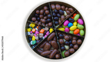 Dragee sugars in a box isolated on white background.