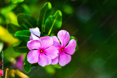 Impatiens hawkeri (New Guinea impatiens) flowers in front of coleus plants