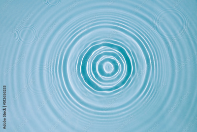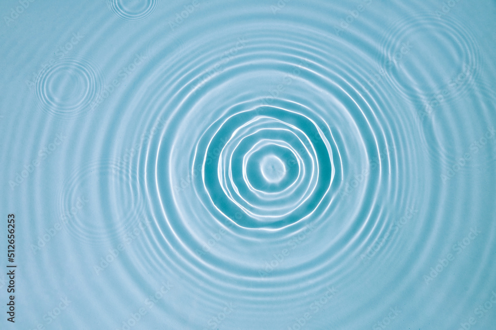 Blue water texture, surface with rings and ripples. Spa concept background. Flat lay, copy space.