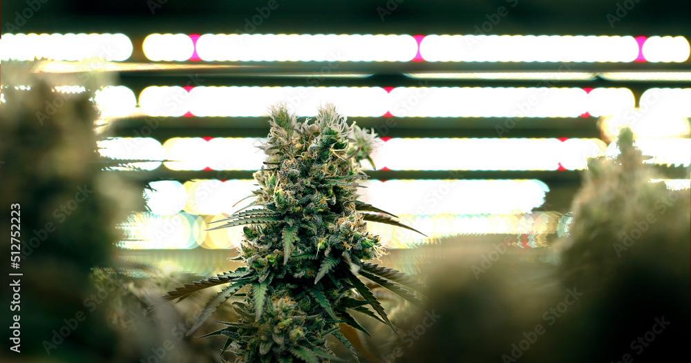 cannabis marijuana farm industry on lab with artificial sun rise