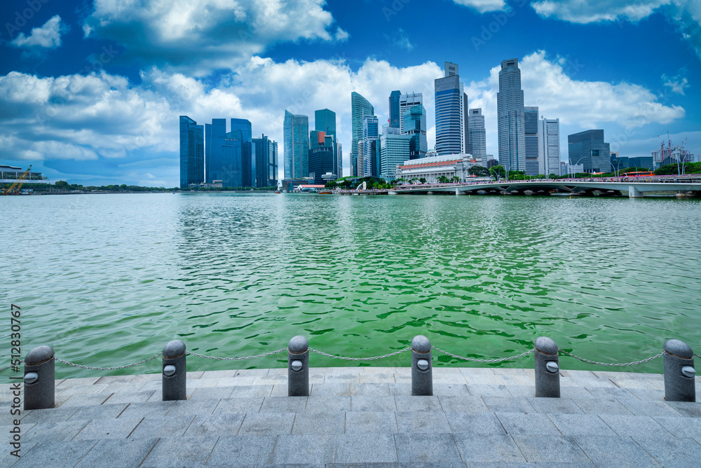 Singapore city skyline of business district downtown in daytime. Vintage tone
