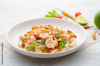 Spicy Glass Noodle Salad,mixed shrimp with minced pork and squid with boiled vermicelli in chili sauce(Yum Woon Sen)
