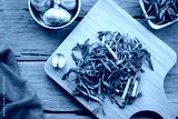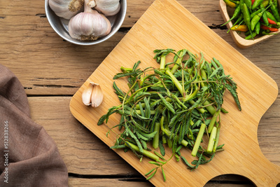 Close up water minosa on cutting board background,Thai vegetable.Top view
