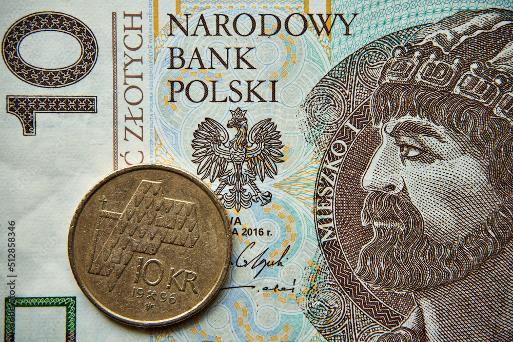 10 złotych, polski banknot 1 10 koron norweskich