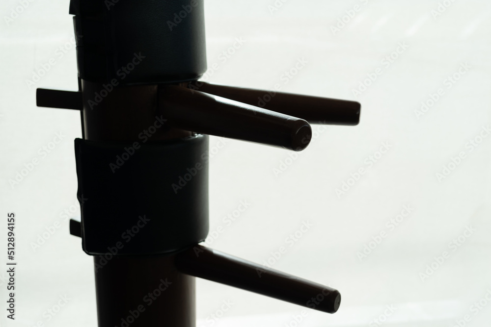Silhouette of wooden dummy on a background. Wing Chun Kung Fu Self defense