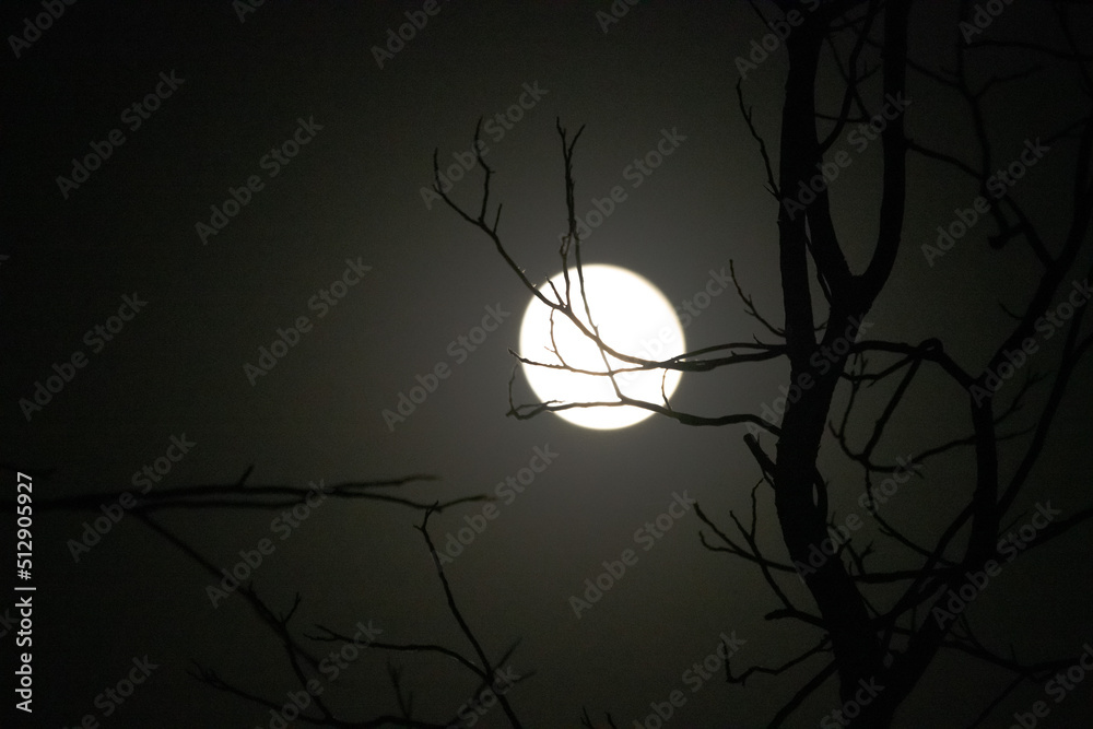 Full Moon Behind Creepy Tree Branches Halloween Spooky Witches Werewolves