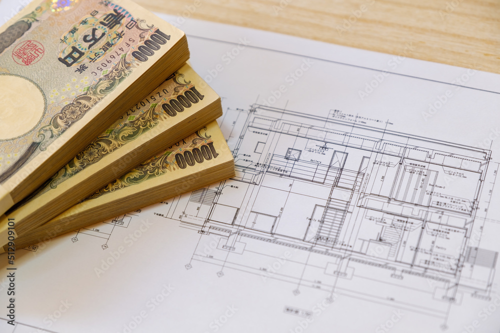 建築図面と現金 設計図 新築