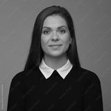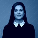 Strict teacher woman in black suit with white collar close up face, isolated female portrait.