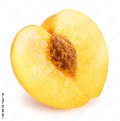 Sweet Yellow Peach fruit isolated on white background, Fresh Peach on White Background With clipping path.