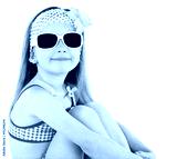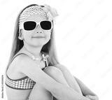 Cute little girl in swimsuit and sunglasses isolated