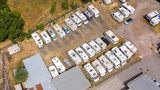 Aerial view on a caravan and camper park in the Italian suburbs.