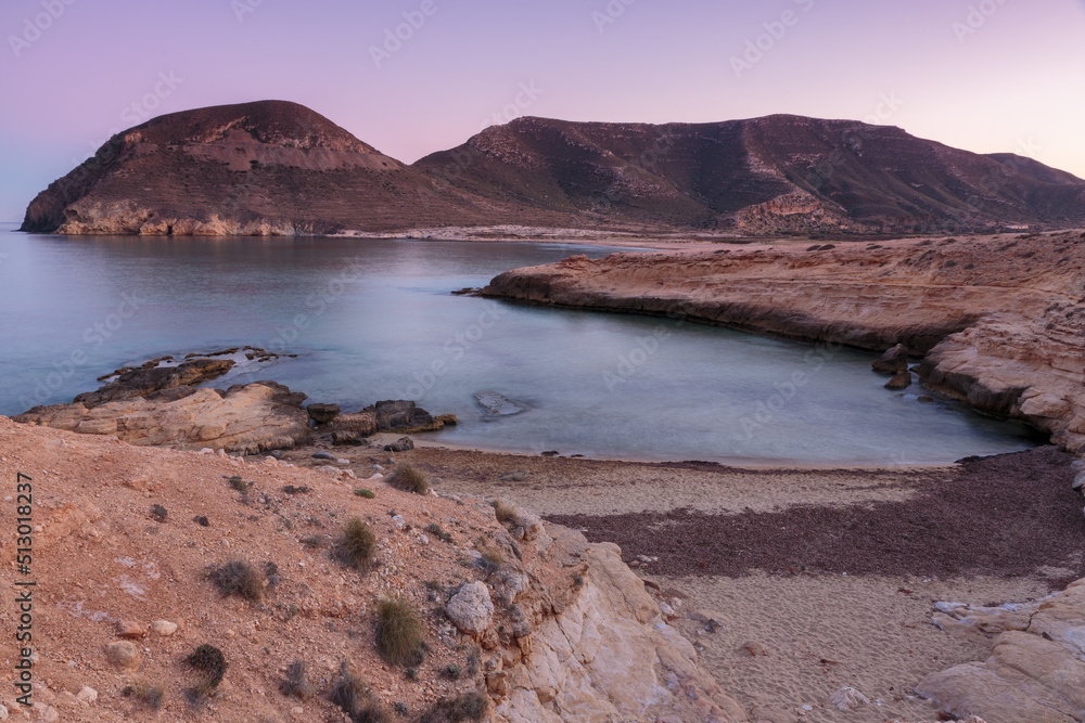 Sunset in the Playazo de Rodalquilar. Natural Park of Cabo de Gata. Spain.