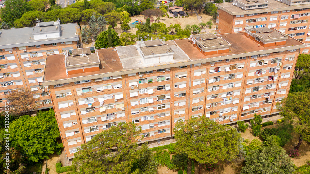 Aerial view on a group of popular low-cost housing. This buildings are in the Spinaceto district in Rome, Italy.