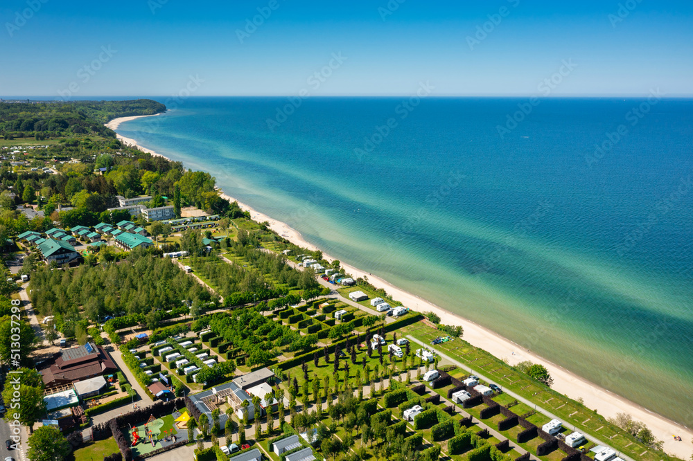 Aerial landscape of the beach in Rozewie by the Baltic Sea at summer. Poland.