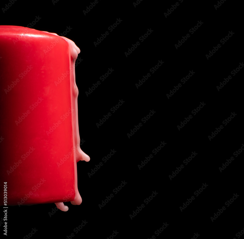 Red candle with wax dripping