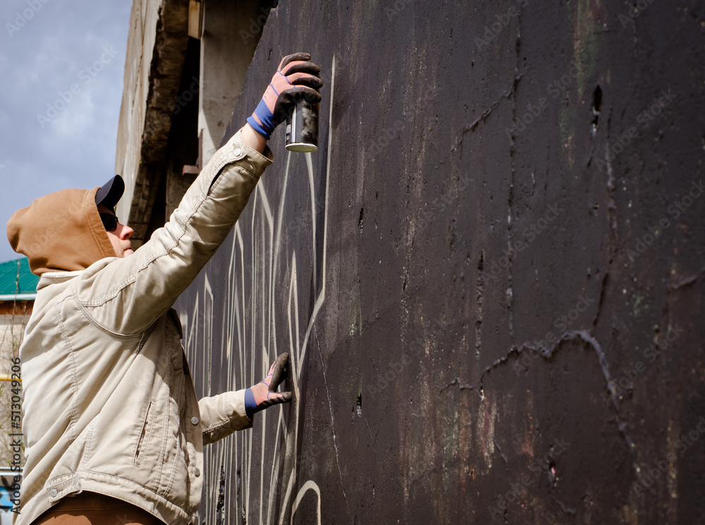 guy in a hood and black glasses writes graffiti