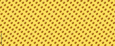 Symmetrical pattern of almonds on yellow background. Continous pattern, isolate, flat lay, minimal