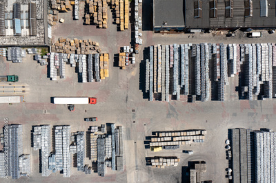 Cobblestones Factory. Aerial View of Industrial Place. Storage Place of Cobblestones Top View.