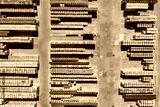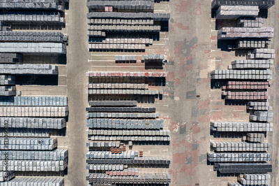Cobblestones Factory. Aerial View of Industrial Place. Storage Place of Cobblestones Top View.