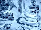 Mining Quarry with Special Heavy Equipment Open Pit Excavation. Dolomite Mine. View From Above. Industrial Place Top View.
