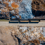 Scrap Metal Recycling. Aerial View of Industrial scrap Processing. Empty Wagons.
