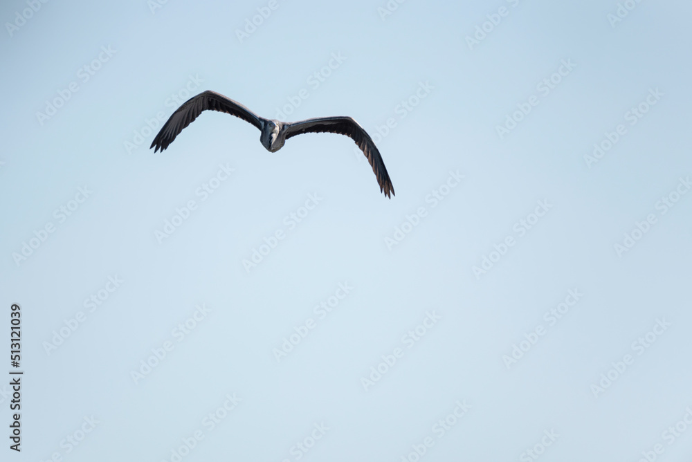 Beautiful image of Grey Heron Ardea Cinerea in flight over Somerset Levels wetlands landscape in Spring