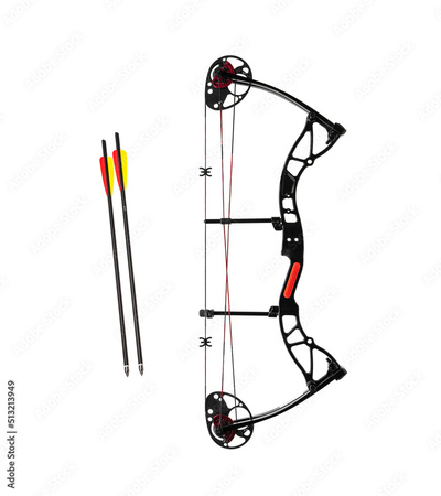 Modern, compound hunting bow. An ancient weapon with a modern twist. Isolate on a white back.