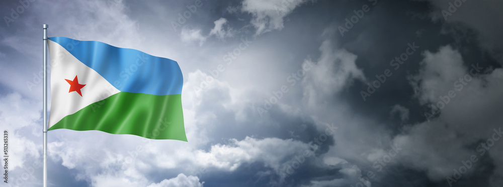 Djibouti flag on a cloudy sky