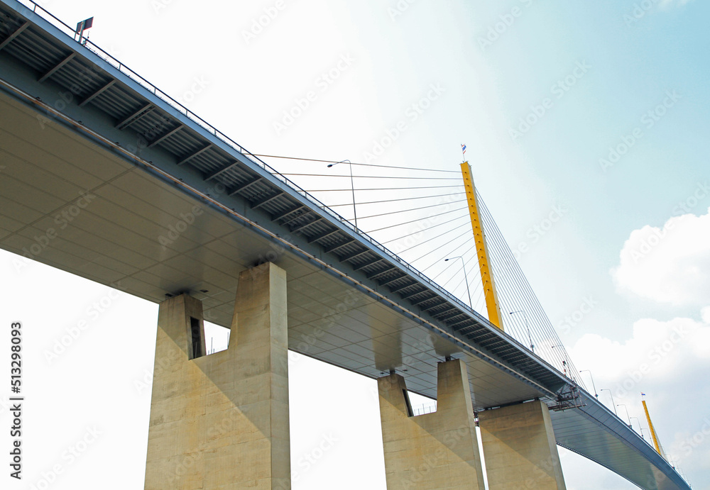 Rama IX suspension bridge in Bangkok, Thailand.