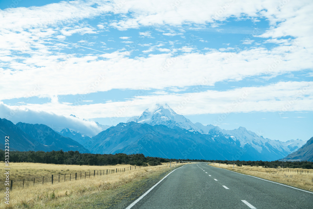 View of hills or mountain with the road in New Zealand, travel concept