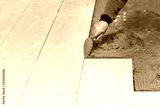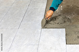 Construction worker are tiling on the floor.