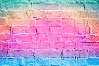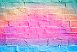 Happy birthday unicorn mermaid pink background summer art invitation or rainbow color brick texture