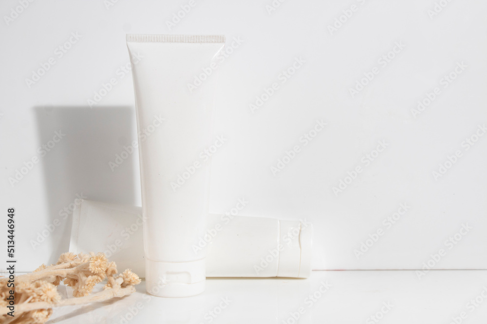 mockup tube bottle for skin care cosmetic summer sunscreen, product branding, cream lotion
