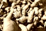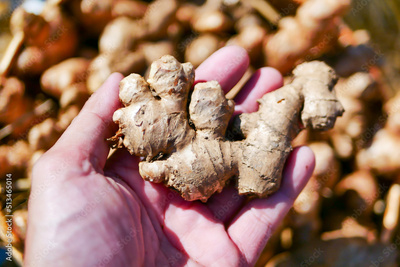 Close up of hand holding fresh ginger