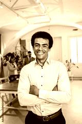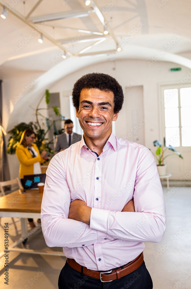 Portrait of smiling African American businessman in office.