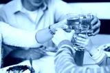 Family toasting water glasses in celebration