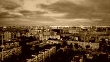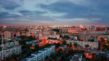 Illuminated residential district in large city at night aerial panoramic view