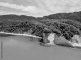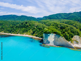 Beautiful view on Black Sea coast. The Kiselev Rock, Tuapse Russia. Drone view of rocks, nature, sea and water