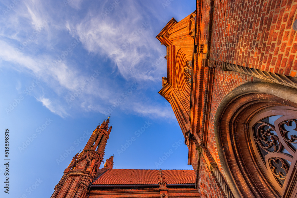 Vilnius, Lithuania. Roman Catholic Church Of St. Anne And Church Of St. Francis And St. Bernard In Old Town In Summer Sunny Day. UNESCO World Heritage