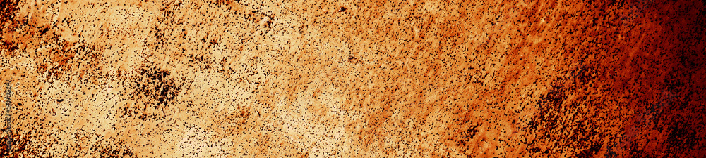 Old rusty metal. Grunge. Black yellow orange grunge texture. Rust background with space for design. Horror, spooky, halloween concept. Web banner. Website header. Wide. Panoramic.