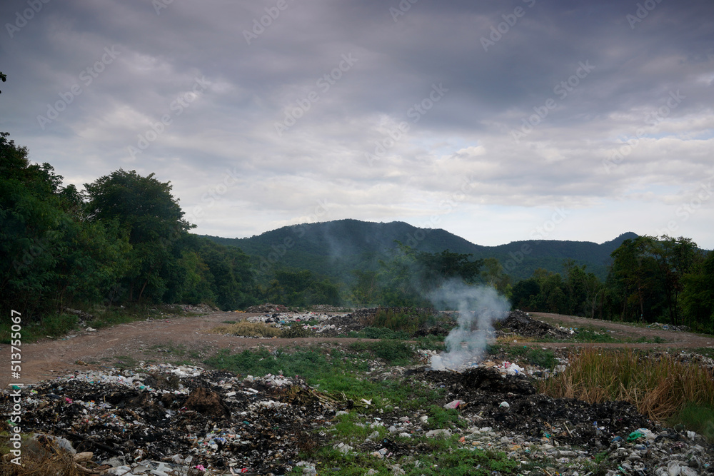 View of the waste disposal pit in rural Asia incineration of waste in natural areas