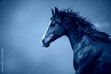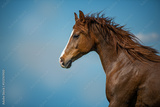 Galloping arabian horse with blue sky as background