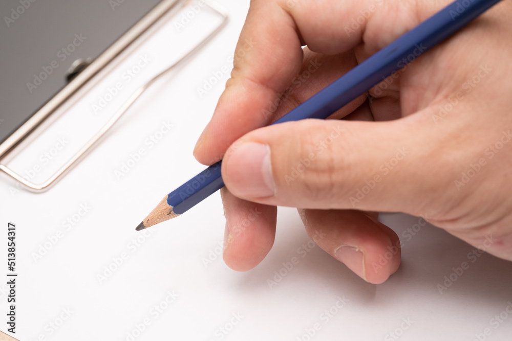 hand writing on clipboard. Stationery. write a note on empty blank with a pencil