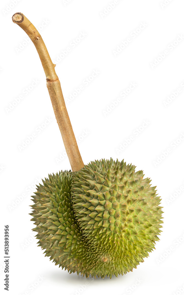 Fresh Long stem durian fruit isolated on white background, Fresh Long stem or Kan yao durian over White Background With clipping path.