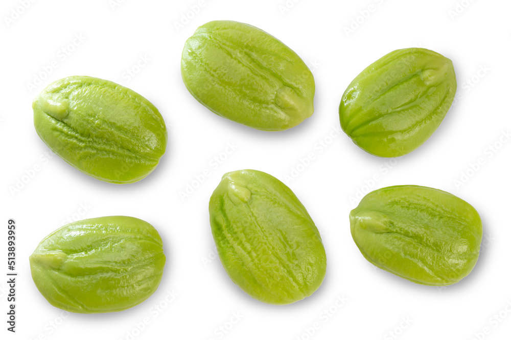Fresh Parkia speciosa seeds isolated on white background, Fresh Bitter Beans or Sato on White Background With clipping path.