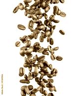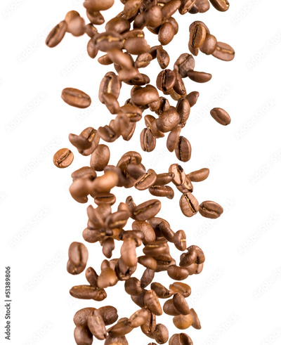 falling coffee beans isolated on white