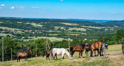 horse in the pasture overlooking the mountains