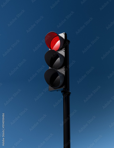 traffic light with working red signal isolated on blue sky background. Stop signals. Mock-up or source. 3d render