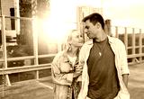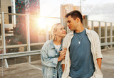 summer holidays, love and people concept - happy young couple hugging on roof top city parking