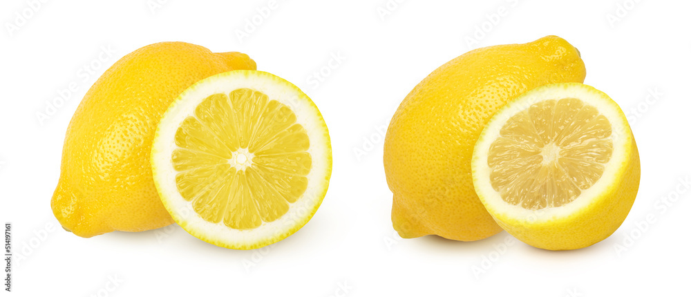 lemon fruit and sliced isolated on white background, fresh lemon